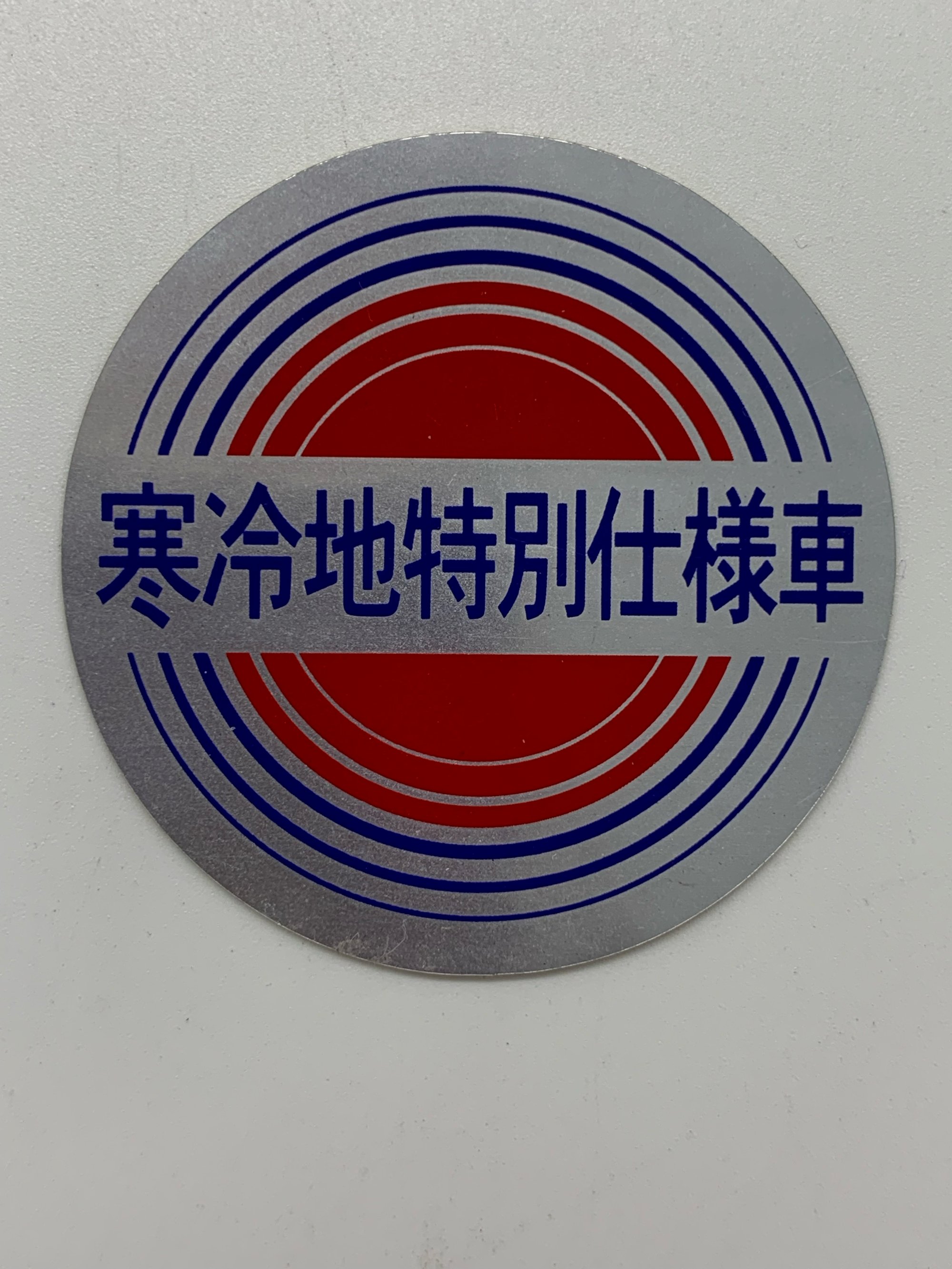 It translates as 'cold region special edition' sticker and was used on vehicles sold in the colder regions of Japan.