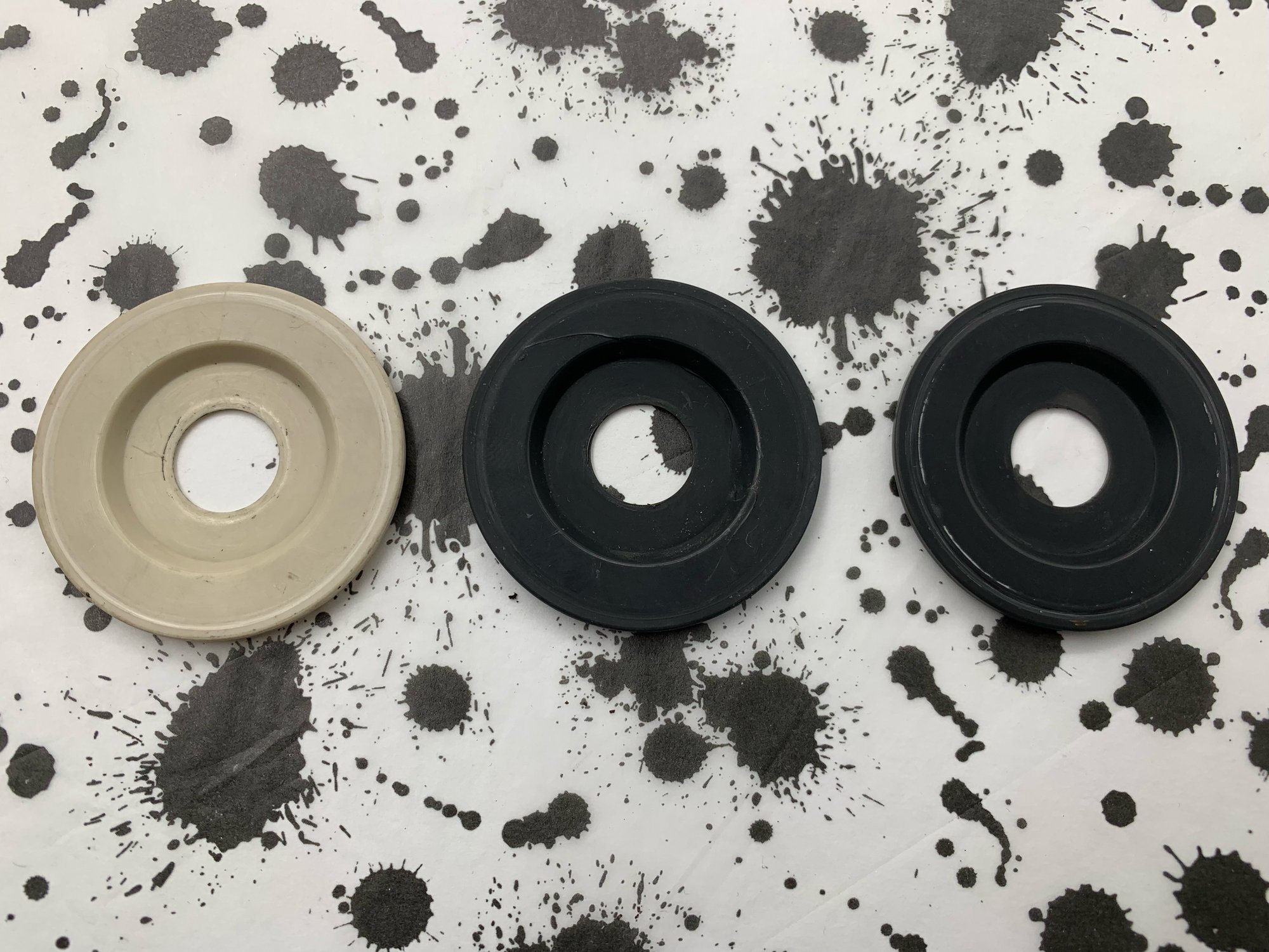 All in good condition, but the middle one has a split (this won't affect form or function) and the secong black one has a white line that I think could be removed.